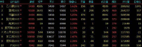2026年4月7日,早盘开盘,国内期货主力合约涨跌不一,乙二醇、塑料、甲醇涨超5%,聚丙烯涨超4%,纯苯、PX0>对二甲苯涨超3%。跌幅方面,生猪、烧碱、苹果、玻璃跌超1%,菜粕、氧化铝、豆粕、焦煤小幅下降。