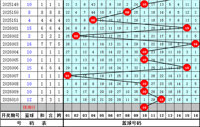 蓝球分析:上期蓝球奖号开出12,为大号,上周日蓝球奖号开出10,最近十周日蓝球号码大小比为6:4,大号蓝球明显较热,本周日注意大号蓝球继续开出,参考蓝球号码09、10、12、14、15。