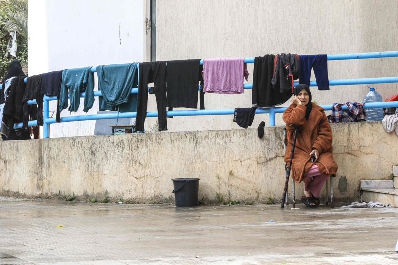 3月20日,黎巴嫩南部口岸城市西顿,别称女子在一处当作避风港的学校里休息。\n 新华社/法新