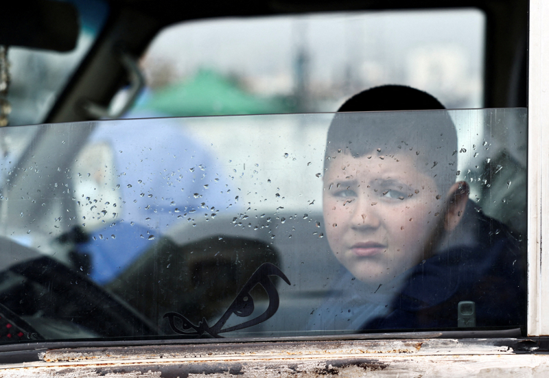 3月20日,黎巴嫩贝鲁特,一绅士离失所的男孩在车中望向窗外。\n 新华社/路透