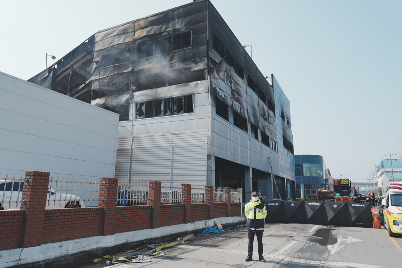 3月21日,韩国大田工场失火现场。\n 、 新华社记者 朱辉 摄