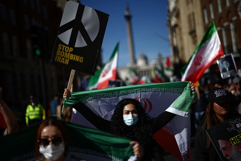 3月21日,东说念主们在英国伦敦干与荟萃,抗议好意思国和以色列对伊朗发动军事打击。 新华社/法新