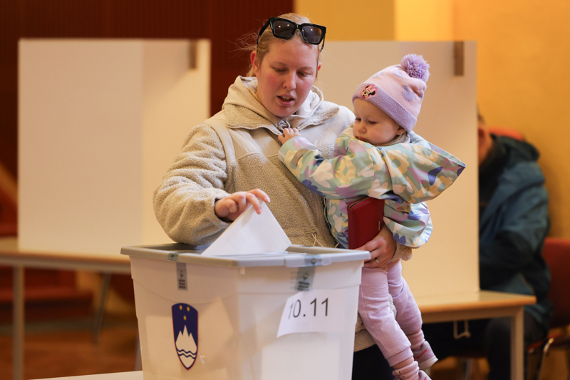 3月22日,选民在斯洛文尼亚齐门卢布尔雅那一座投票站投票。\n 新华社发(泽利科·斯特凡尼奇摄)