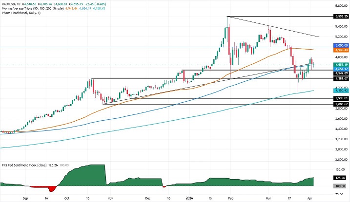 周一(4月6日),现货黄金价钱收盘自4700好意思元/盎司上方的日内高位大幅回落,伊朗场面方面的最新音问激勉商场波动。