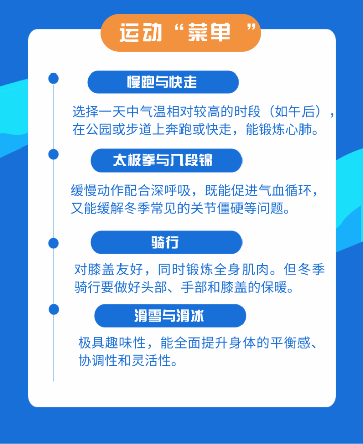冬季运动不必拘泥于形式,大家可以根据天气和个人喜好,灵活选择室内或室外项目,这样更容易坚持。