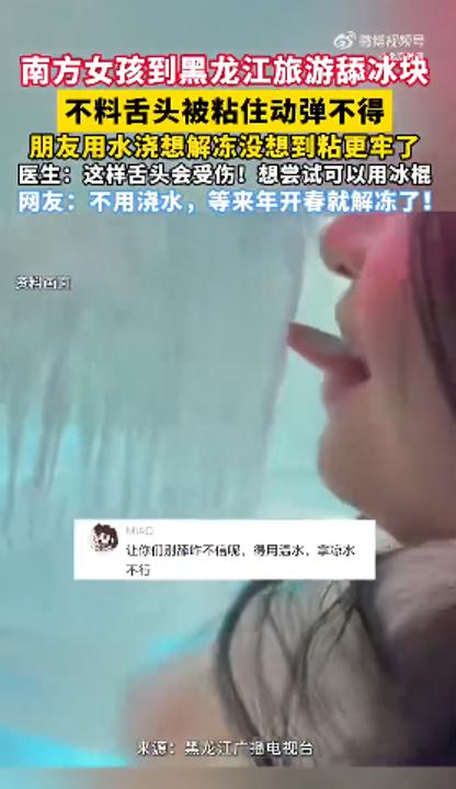 万生优配 南方女孩舔黑龙江户外冰砖,舌头被牢牢黏住,朋友用水浇想解冻没想到黏更牢