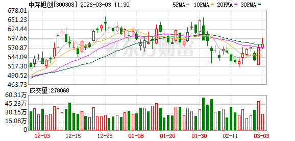 数据宝统计,为止11:02,中际旭创成交额150.83亿元,超150亿元。最新股价飞腾2.83%,短线炒股配资换手率2.33%。上一往异日该股全天成交额为275.58亿元。