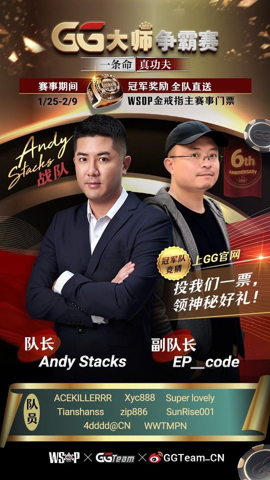 金波此次担任副队长,除亲自参赛外,还将协助队长完成队员推荐、选拔与招募工作。谈及受邀经历,金波表示自己与AndyStacks早有合作渊源:“非常荣幸能够加入Andy的战队,并受邀成为副队长。两年前在播客吧直播解说WSOP线上主赛最终桌时,我和Andy有过解说搭档的合作。他多年常规桌的深厚积淀,以及对扑克游戏本质的理解,免息炒股配资给我留下很深的印象。”