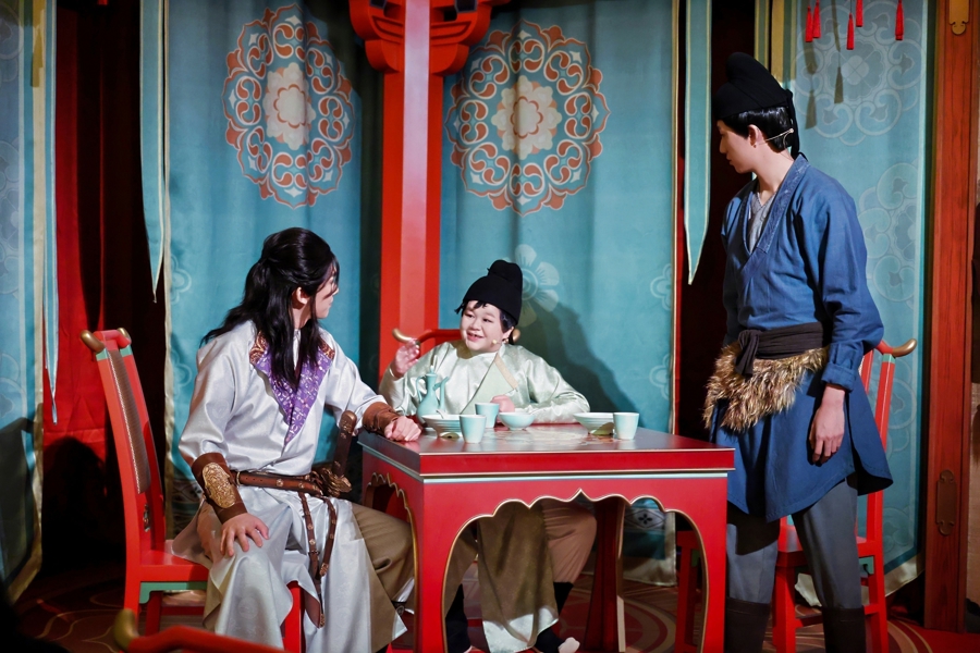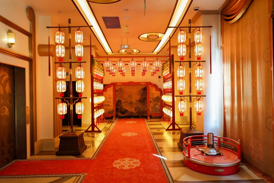 《长安三万里》唐歌宴-互动主题餐厅位于好莱坞俱乐部二层,步入影片同款花灯门廊,轻轻开放幕帘,仿若刹那穿越至繁荣盛唐。古色古香的唐风店堂大气好意思丽,良好追思的古风桌椅与餐具叨唠排布,身着传统唐装的“店小二”穿行席间,步步皆是景致,让东谈主一秒千里浸式入戏。这是北京专家度假区首度联袂国产动画电影,以影片《长安三万里》为中枢创意灵感匠心打造的电影IP线下千里浸式体验场景。