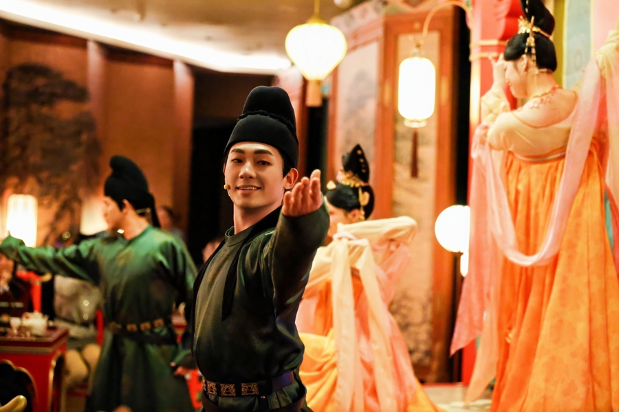 活动时代,“李白”“高适”等高手气扮装亲临现场,带来一系列千里浸式现场上演与近距离互动,让搭客贯通感受诗酒相伴、粗糙潇洒的盛唐鼎好意思意愫。除此以外,多位演艺东谈主员身着灵感源自电影的定制国风衣饰,献上悉心编排、风姿齐备的古风歌舞饰演,搭客可在品味特质好菜的同期,千里浸式踯躅在尽是盛唐风华与录取闲适的独有文娱氛围之中。