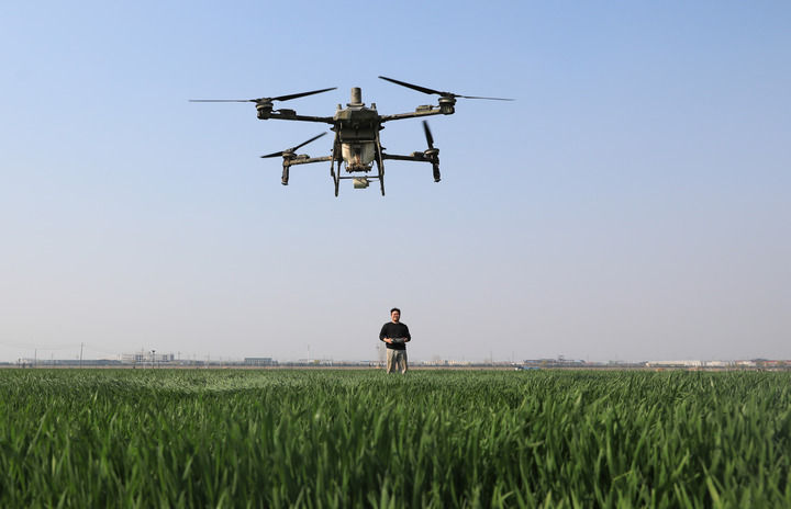 2026年3月20日,在河南省焦作市温县黄河滩区,无东谈主机手操作无东谈主机进行小麦春管功课。新华社发(黄福兴摄)