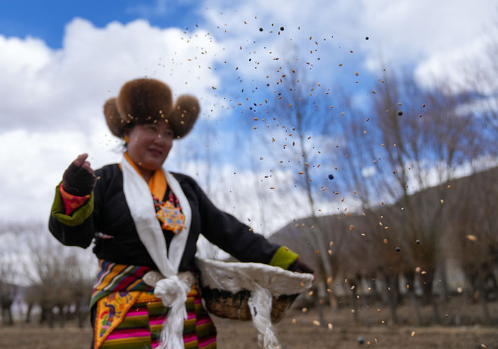 在西南,一年一度的春耕开犁庆典3月16日在西藏农区举行。跟着暗昧机的前行,紧随后来的密斯们从腰间的筐里抓出一把种子,熟识地撒进田垄。