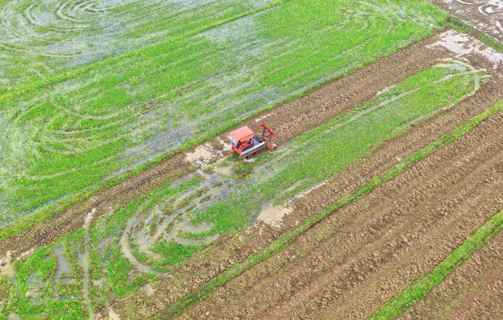 2026年3月20日,在湖南省衡阳市祁东县金桥镇,村民驾驶农机翻耕稻田(无东谈主机像片)。新华社发(曹正平摄)