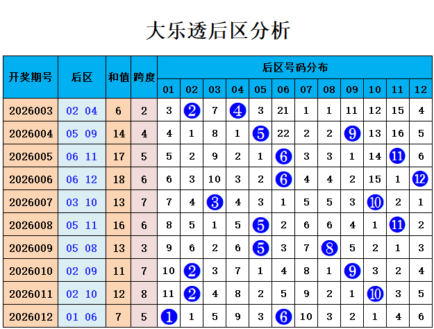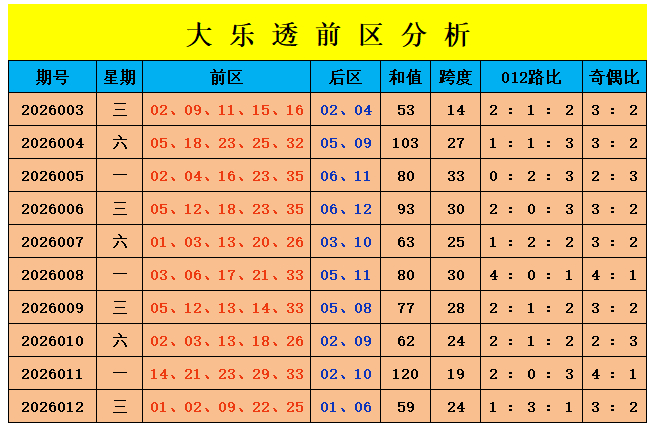 上期回顾:大乐透第2026012期奖号为:前区01、02、09、22、25,后区01、06,前区奖号012路比为1:3:1,奇偶比为3:2,后区开出1路、0路组合01、06