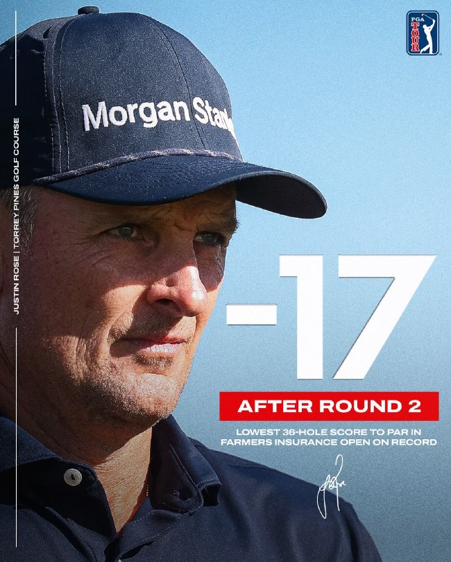 北京时间1月31日,贾斯汀·罗斯周五在多利松南球场打出了更值得夸耀的成绩,赛事纪录是证明。他领先2杆在多利松打破了自己保持的36洞赛事纪录,在农夫保险公开赛第二轮之后建立起4杆领先优势。