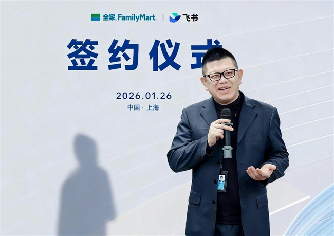 1 月 26 日,知名便利店品牌全家 FamilyMart 与飞书正式签署合作协议。双方将围绕“一体化协同”与“AI 智能化应用”展开深度合作,构建全家“数字新基建”,旨在加强总部与 3300 多家门店的连结互动,以科技智能赋能零售经营。